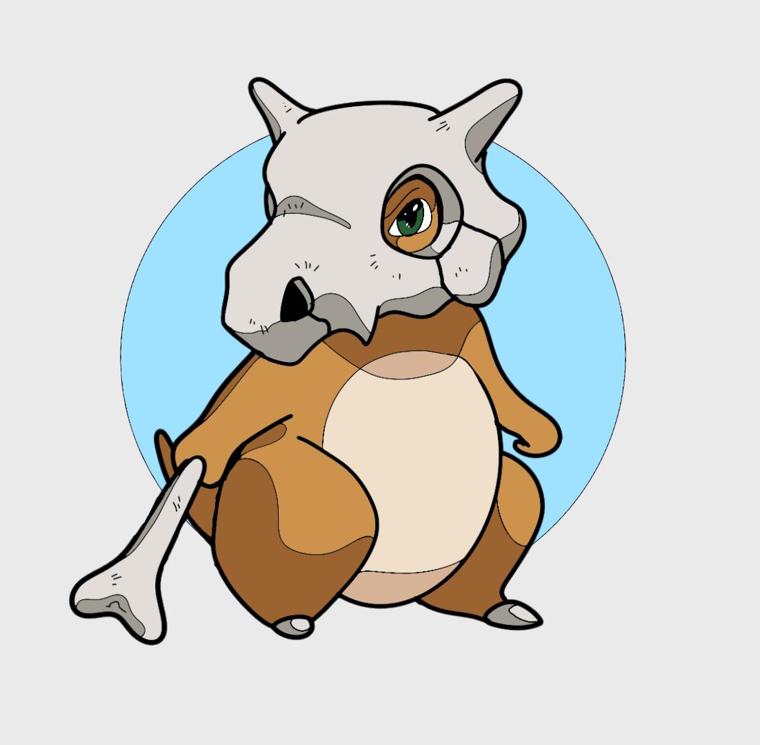 Нарисованный покемон Кьюбон. Нарисованный для принта на футболки, кружки и также является эскизом татуировки. на голубом фоне.