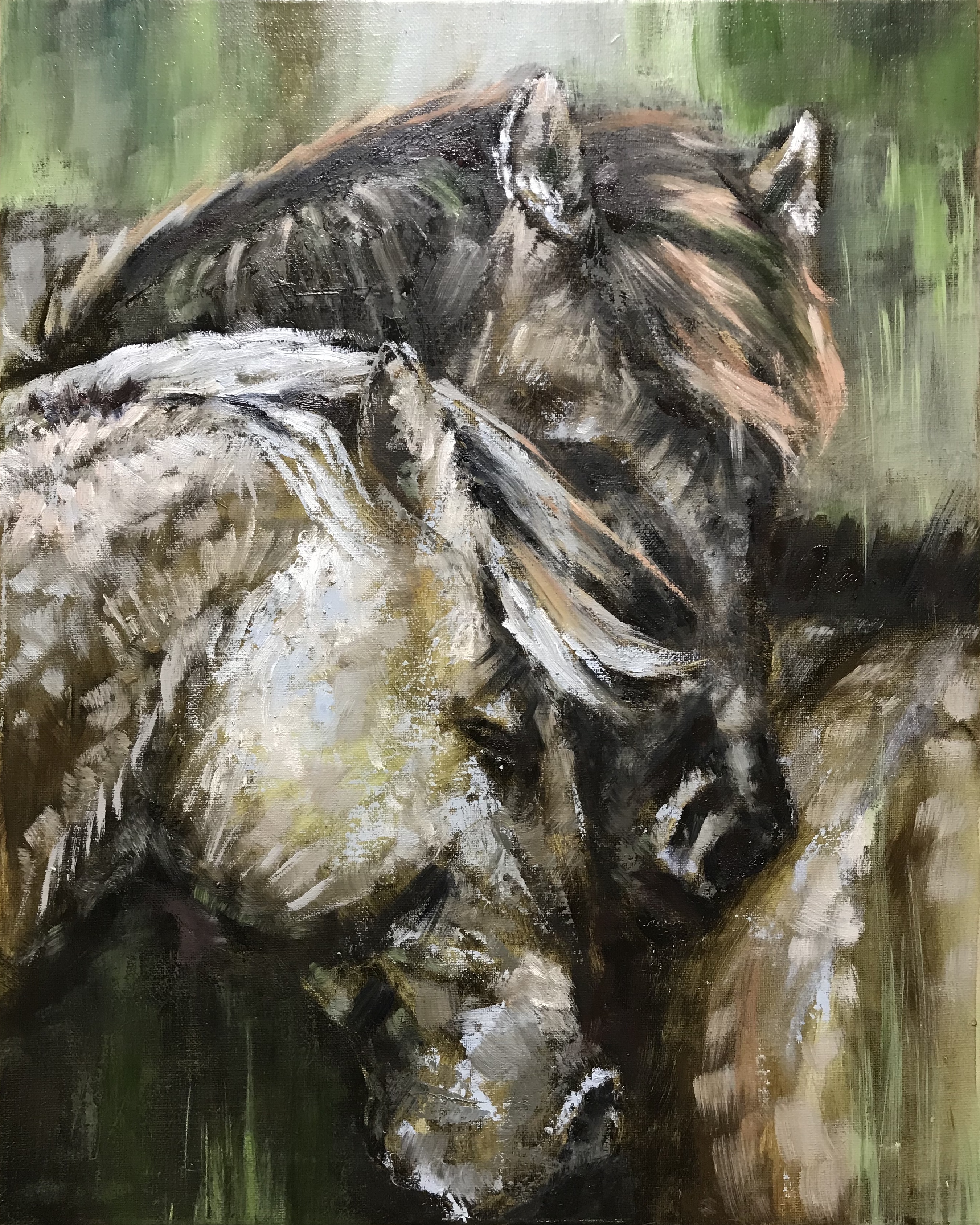 Современная картина, выполнена маслом на холсте. Размер 40х50 см. Две лошади породы фьорд. Короткое северное лето с его тихими радостями и сдержанными теплыми тонами.