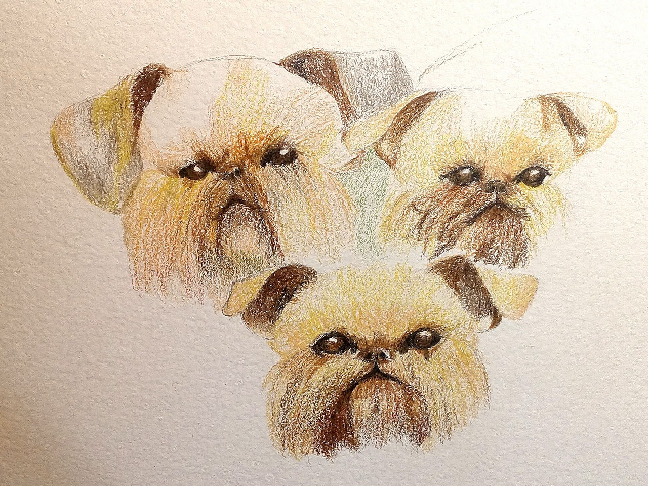 Портрет "Любимые грифоны" групповой портрет собак карандашом на картоне. Выполнено на заказ. Работа выполняется от двух дней, по фотографии.