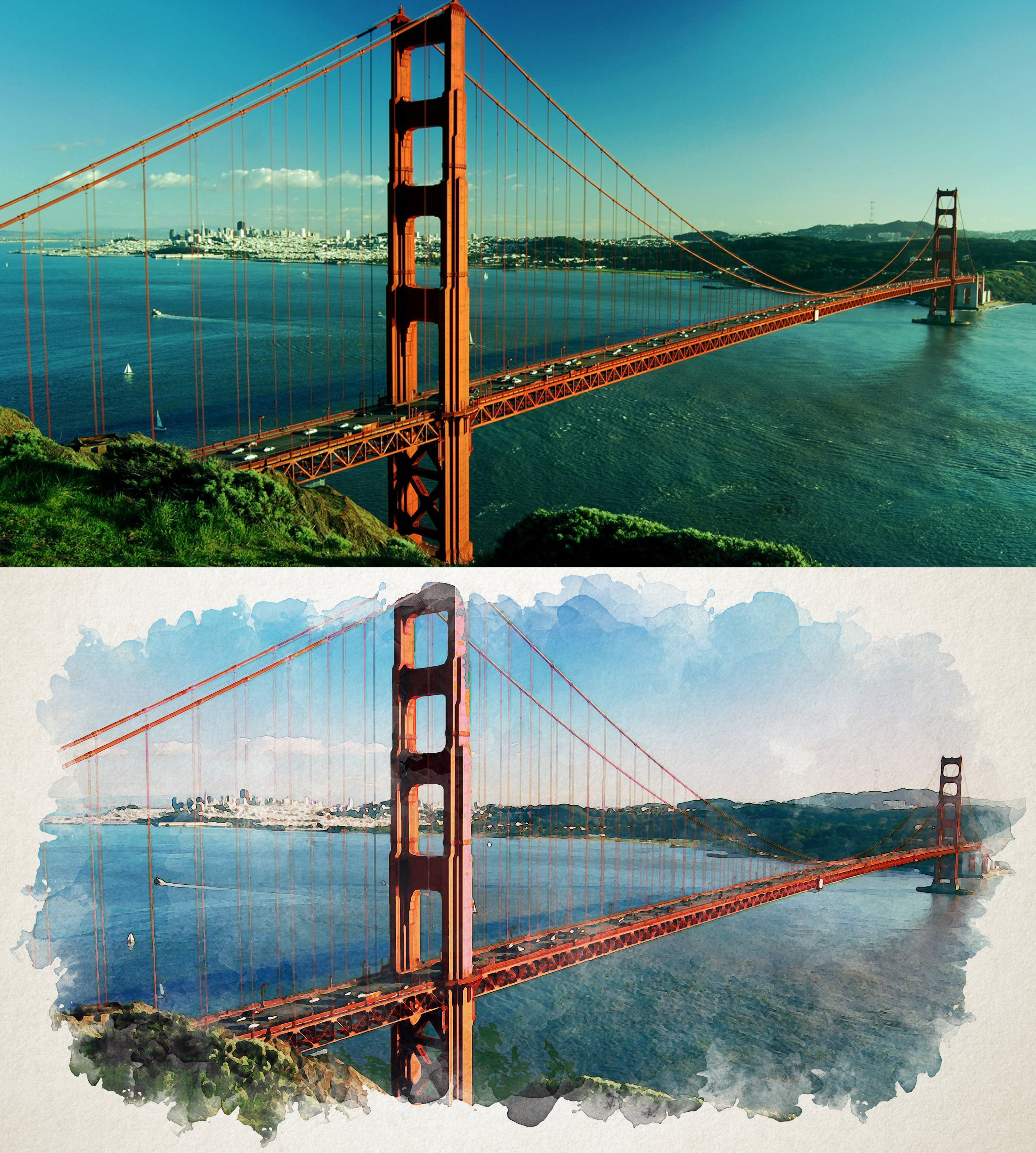 Фотография моста сделанная неизвестным автором, обработано в графической программе различными фильтрами - акварель. Рекомендовано для украшения интерьера.