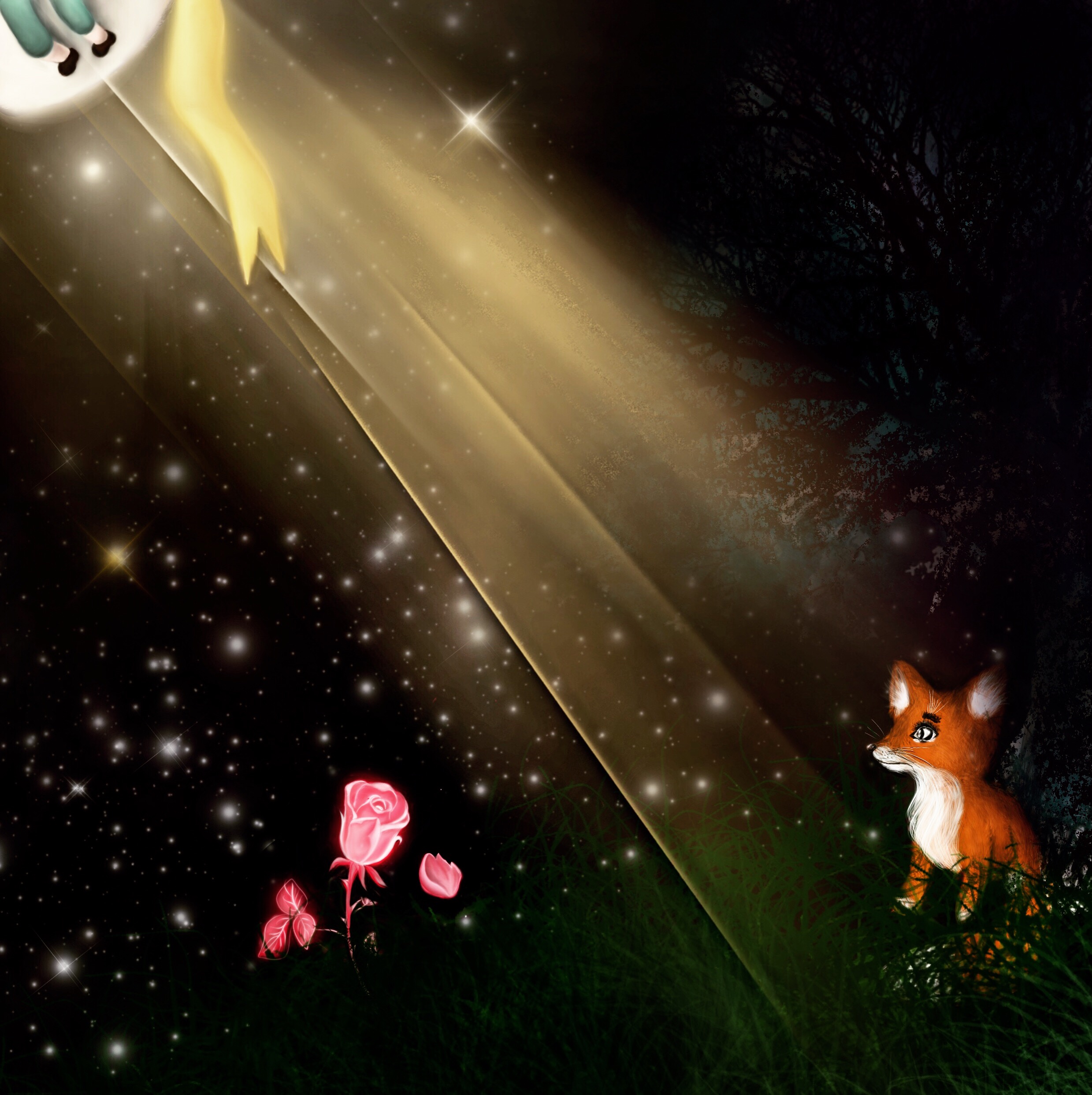 Когда спрашиваешь человека, читал ли он Экзюпери, в ответ часто прилетает эта цитата. Вдохновившись, у меня получился такой вот рисунок. Обратите внимание на взгляд лисёнка.