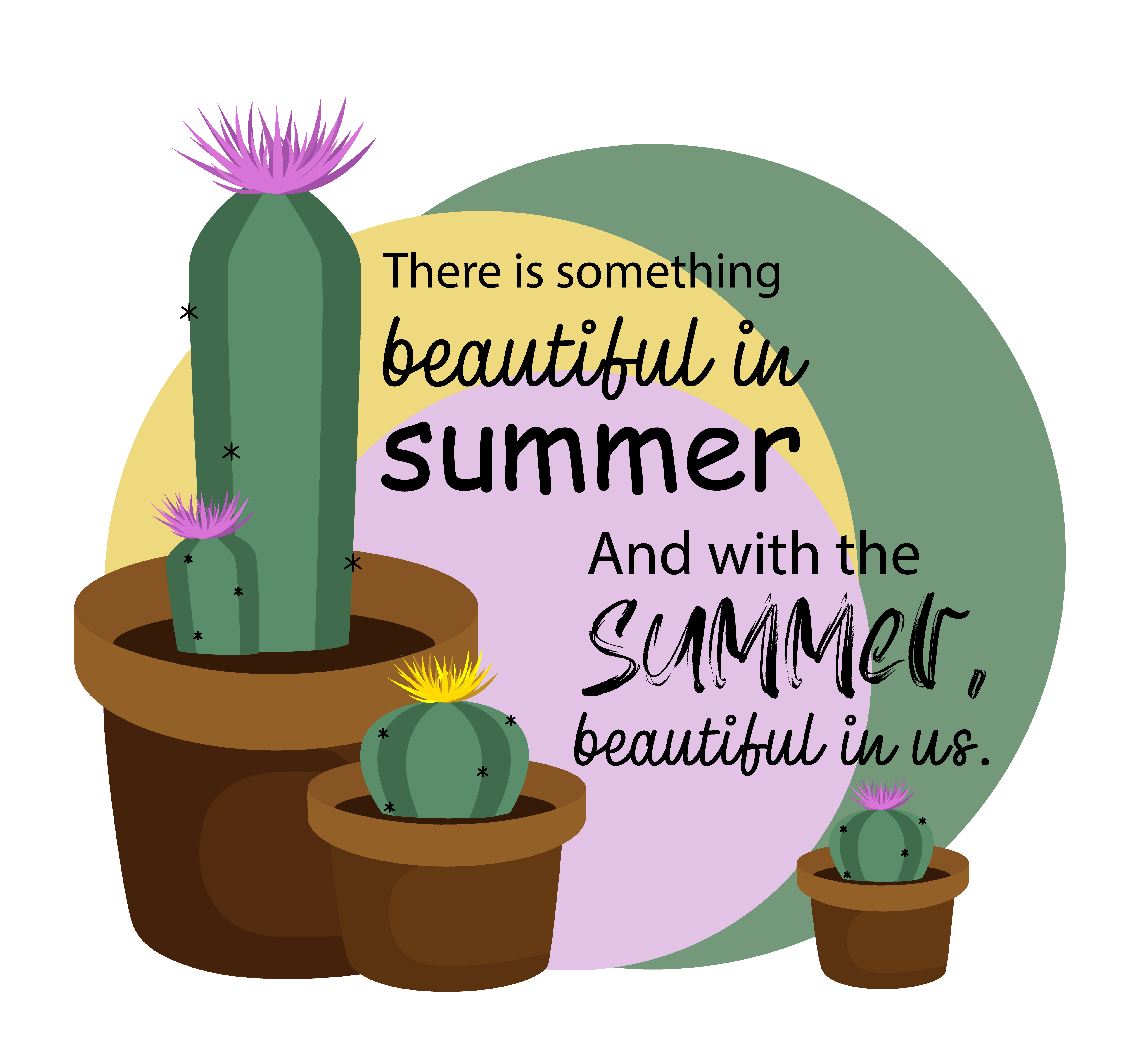 Арт с парой цветущих кактусов и красивой фразе о лете. Подойдет для типографических работ и так же может украсить рабочий экран вашего смартфона.