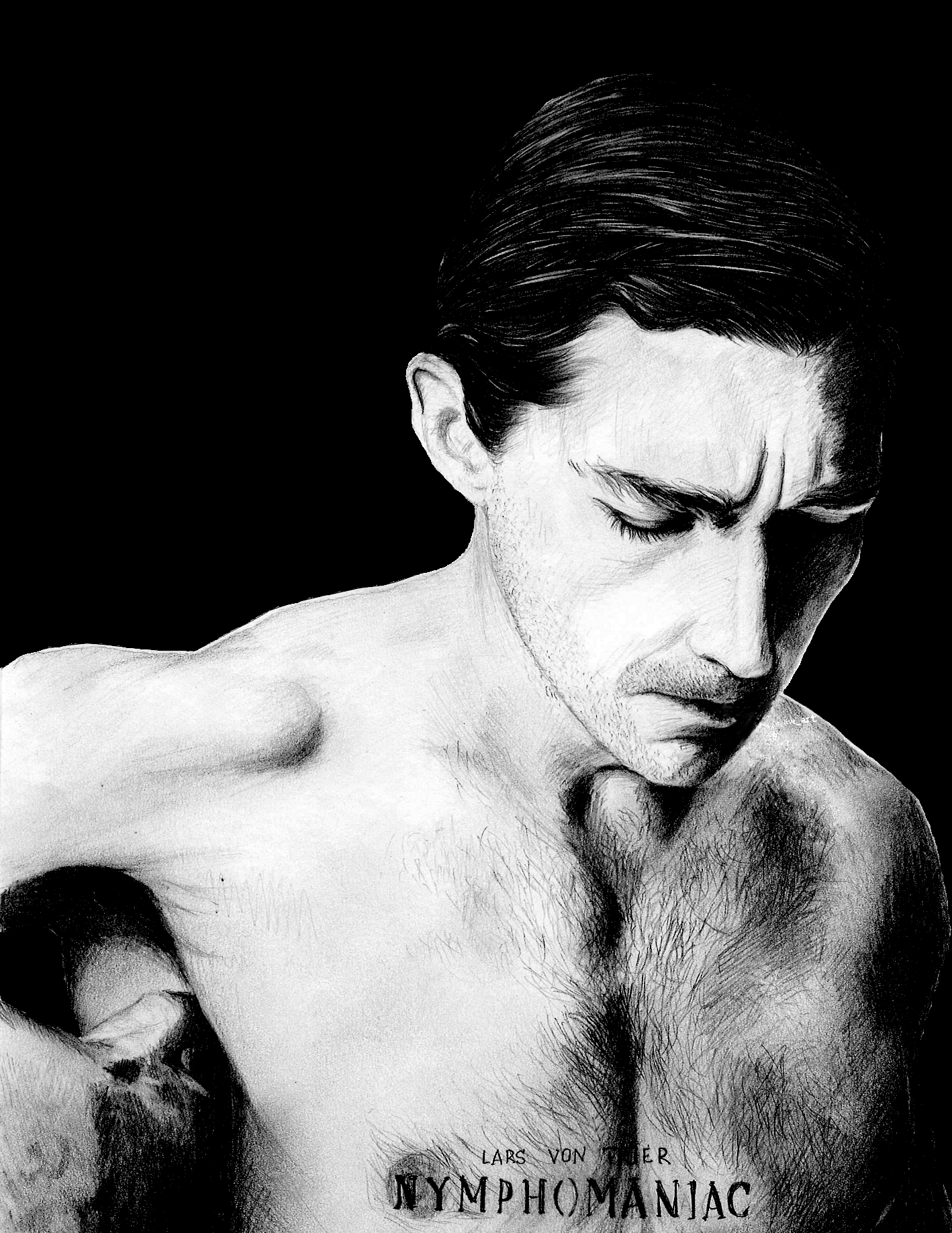 Портрет актера Шайа ЛаБаф из серии постеров к картине Ларса фон Триера "Нимфоманка". В оригинале он представлен с сигаретой. Планируется отрисовка всех официальных постеров к этому прекрасному фильму.