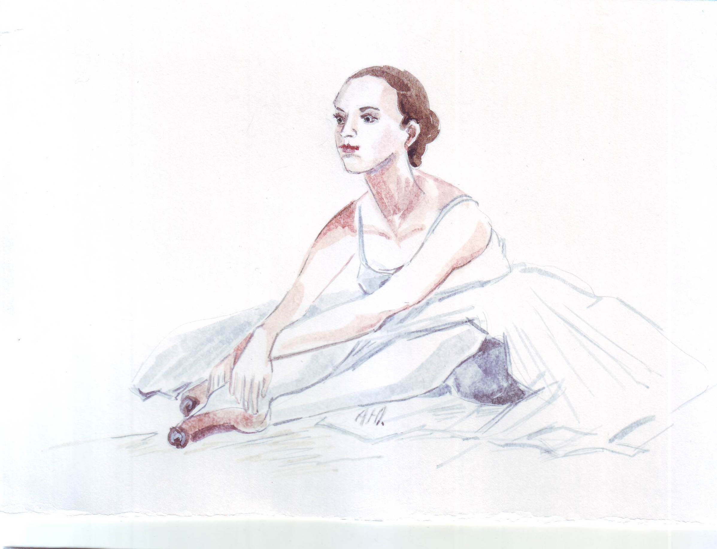 Акварельный скетч балерины. Отправлю файл с данным изображением заказчику (покупателю). Рисунок отсканирован. Исходный размер изображения -а5 формат.