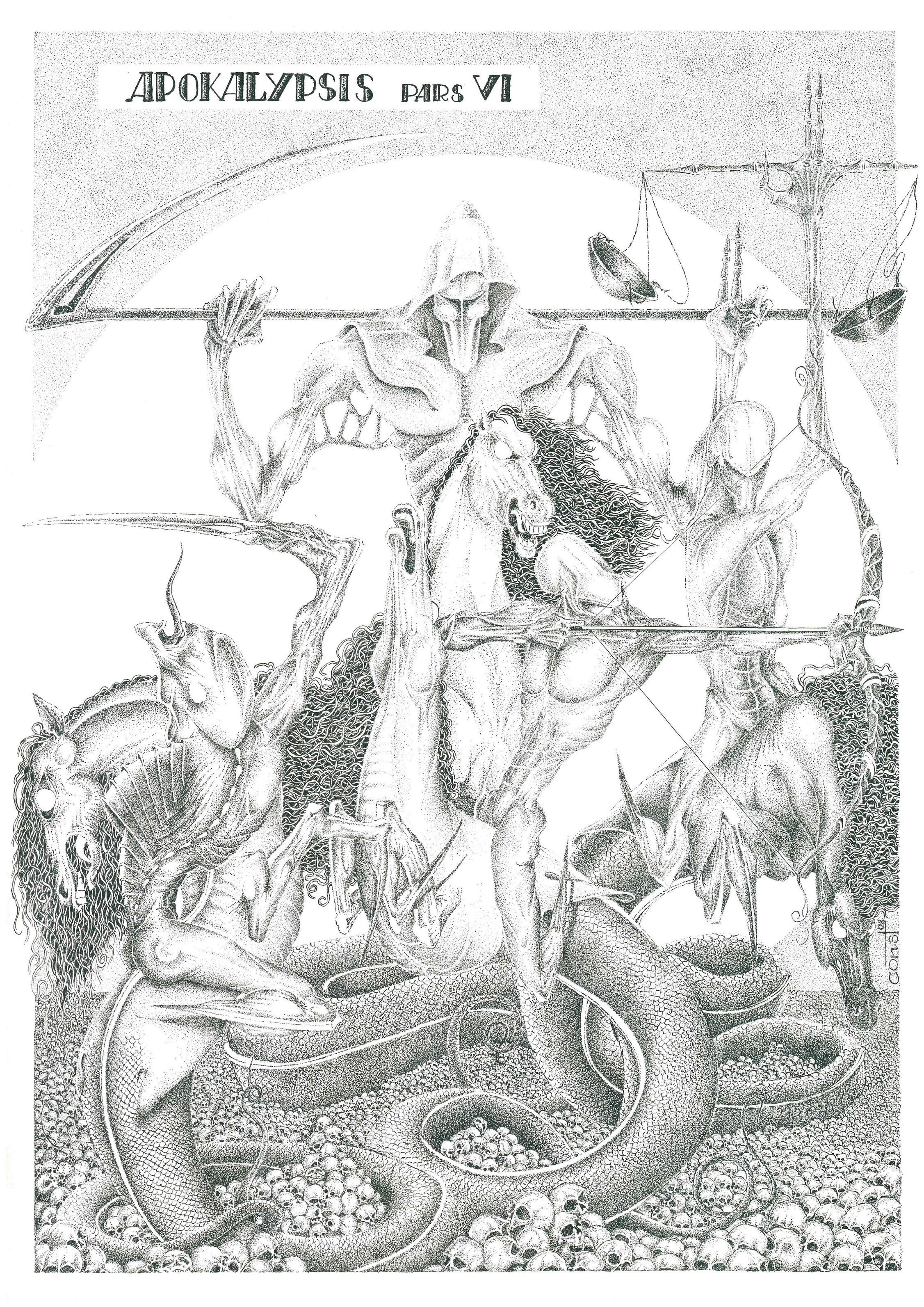 Графическая работа написана в стиле сюр. Черно-белая графика. Тушь-перо. Работа сделана, надеюсь в необычной манере, после прочтения некоторых кусков из библии.